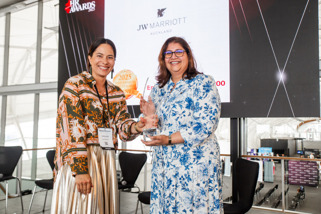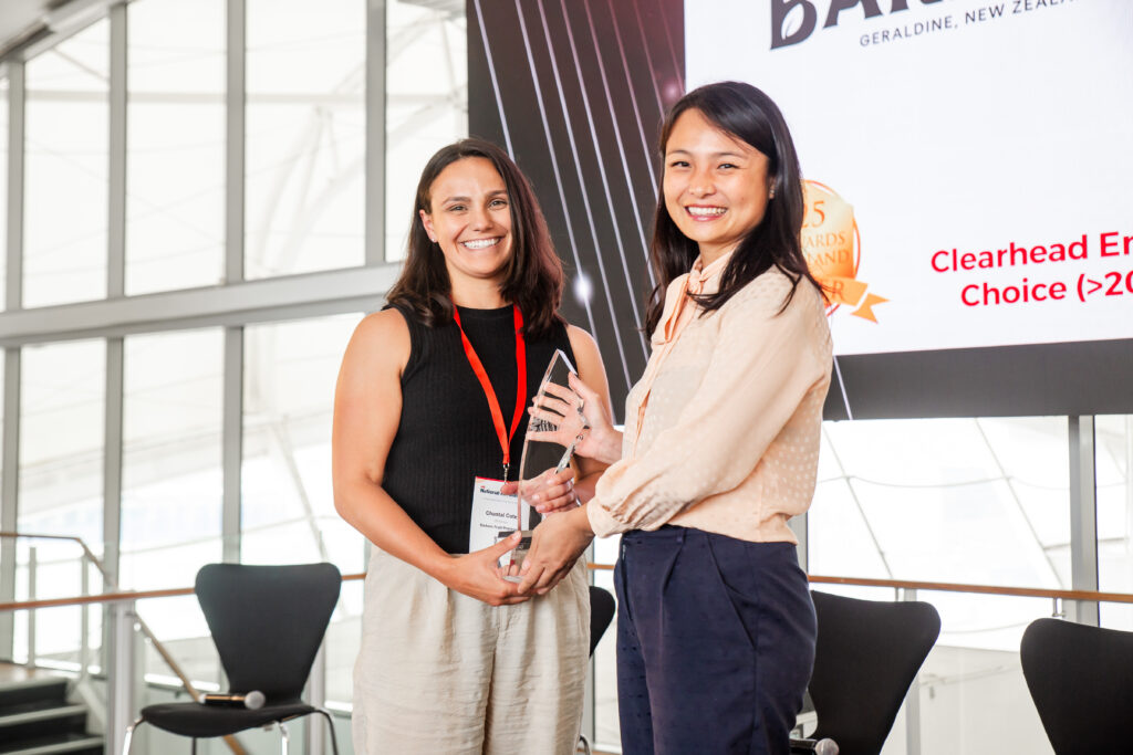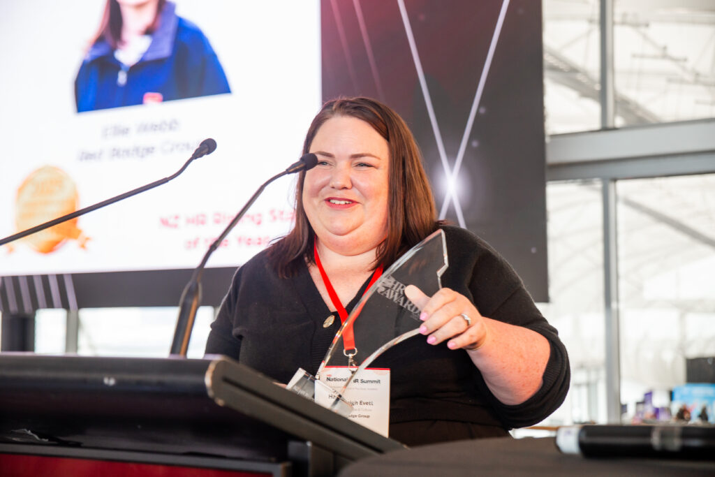 In the photo accepting the award on behalf of Ellie: Hayleigh Evett, Head of People and Culture at Red Badge Group
